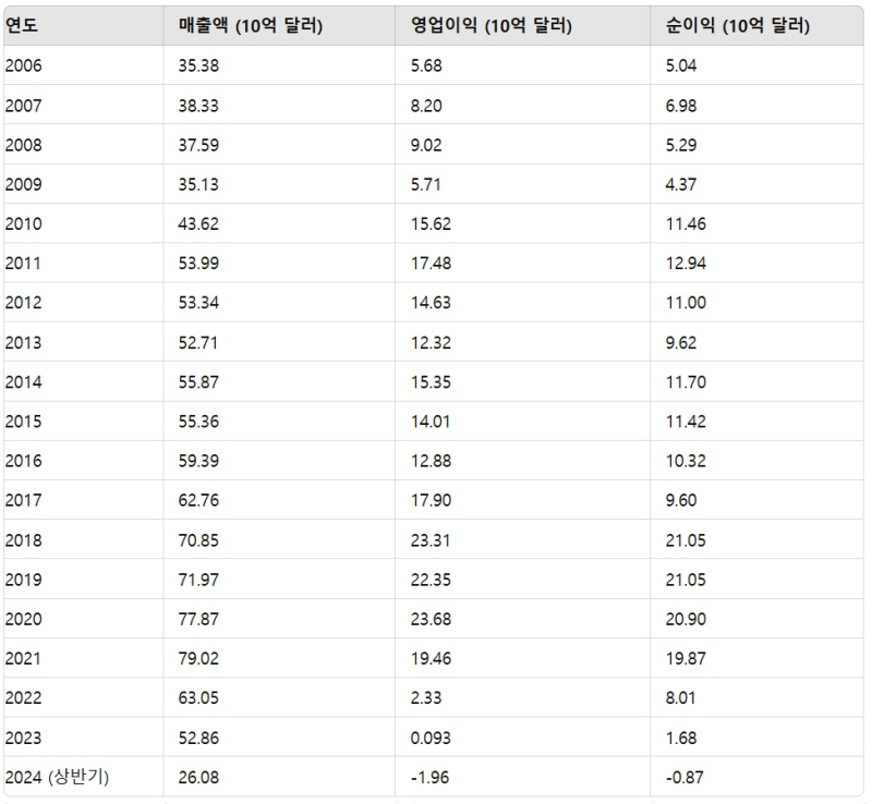 GAAP(일반적으로 인정된 회계 원칙) 기준으로 매출액, 영업이익 등도 최악의 국면입니다. 2006년 기준으로 지난해 최악의 실적을 낸 데 이어 올해는 더 상황이 안 좋아 보입니다.