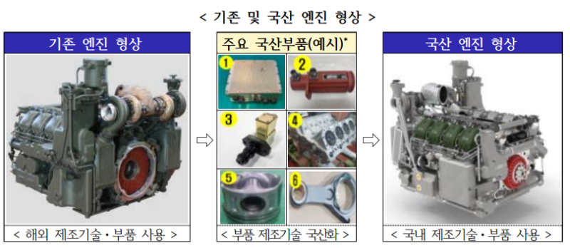 엔진 국산화는 첫째로 해외 엔진 제조사에 지불했던 기술료 등 비용을 절감시킬 수 있다.