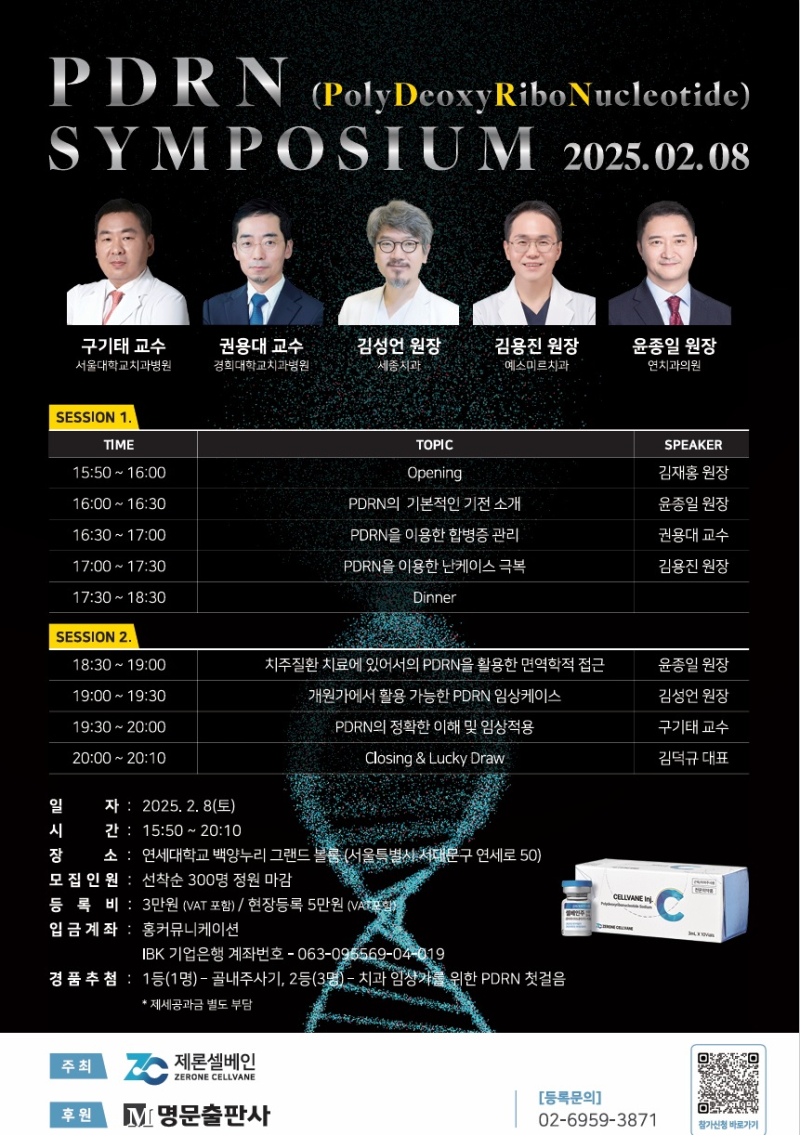 제론셀베인은 오는 2025년 2월 8일 서울 연세대학교 백양누리 그랜드 볼룸에서 ‘2025 PDRN 심포지엄’을 진행한다.