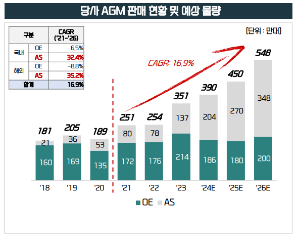 이 같은 특성으로 친환경차 시장이 확장될수록 AGM 배터리의 수요는 늘어날 수밖에 없다는 게 업계의 평이다.