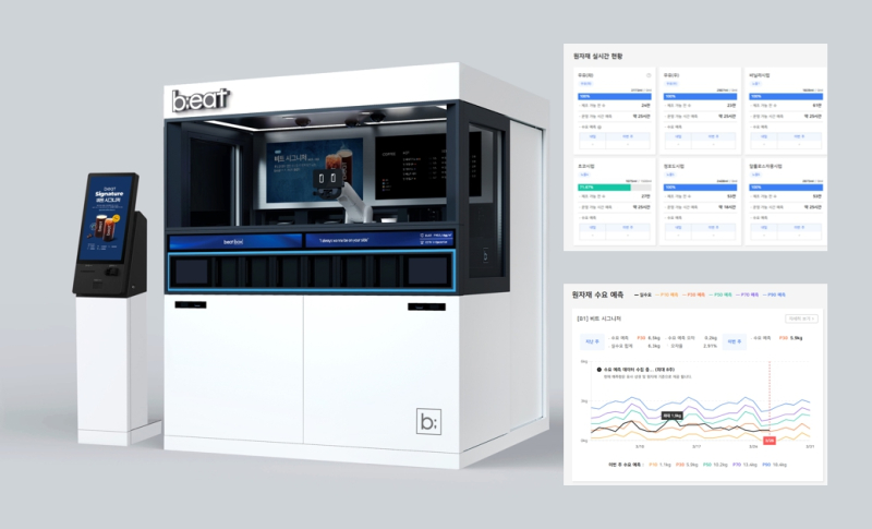 아이매드는 주문 데이터를 학습해 수요 예측과 자동화 물류 발주, USP(판매가치제안) 마케팅 자동화가 가능한 로봇서비스 운영 기술로, AI로봇커피 비트(b;eat)의 ‘완전 무인 매장’을 구현해주는 핵심 SW이다. 특히 비트 외 다양한 푸드테크 산업에도 적용 가능해 높은 잠재성을 갖추고 있다.