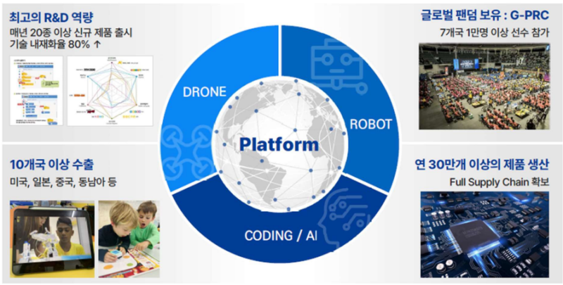 특히 이 기업은 10여년 넘는 기간 동안 ‘글로벌 프로 로봇 챔피언십(G-PRC)’ 대회를 운영해오면서 드론 교육 분야 강자로서 혁혁한 자리를 차지하고 있으며, 방산 분야까지 사업영역을 넓히고 있어 앞으로의 행보가 더욱 주목된다.