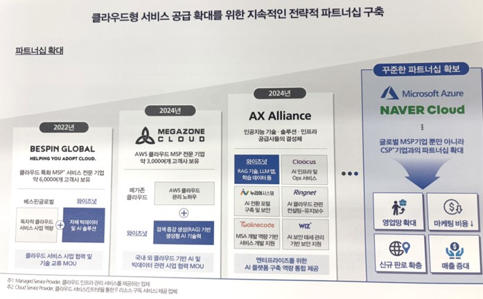 와이즈넛은 클라우드형 서비스 확장을 위해 베스핀글로벌, 메가존클라우드 등과 파트너십을 맺었다.