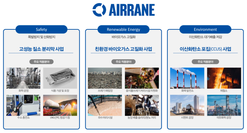 기체분리막 모듈 제조·판매 및 이를 활용한 탄소 포집·저장·활용(CCUS) 사업을 영위하고 있는 에어레인이 올해 정부가 시행하는 바이오가스 촉진법에 힘입어 급격한 성장을 앞두고 있다.