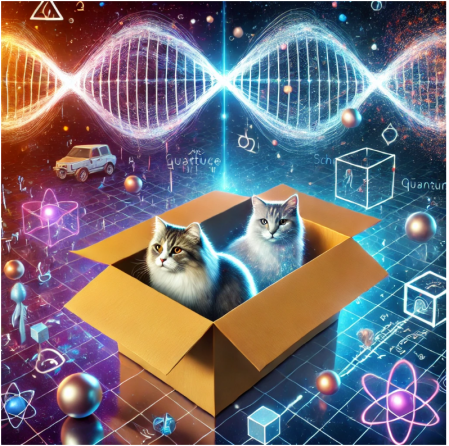 상자 안에 고양이, 독약, 방사성 물질, 그리고 이를 감지하는 장치가 있다고 가정해 봅시다. 방사성 물질이 붕괴되면 장치가 독약을 터뜨려 고양이를 죽이고, 그렇지 않으면 고양이는 살아 있습니다.