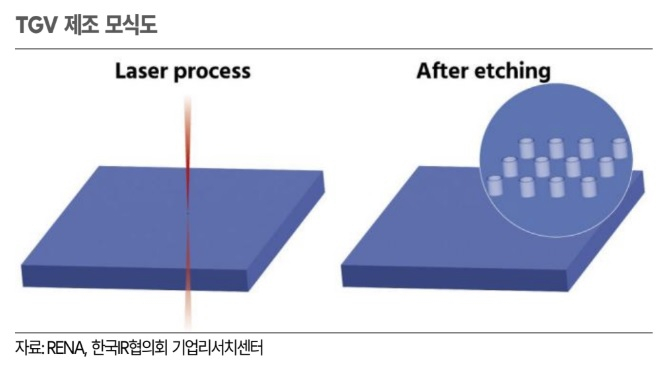 켐트로닉스는 디스플레이 유리 원장 식각 원천 기술을 보유해 글로벌 반도체 OSAT 업체의 TGV 공정 프로젝트에 파트너사로 참여하며 TGV 공정 기술력을 키워왔다.