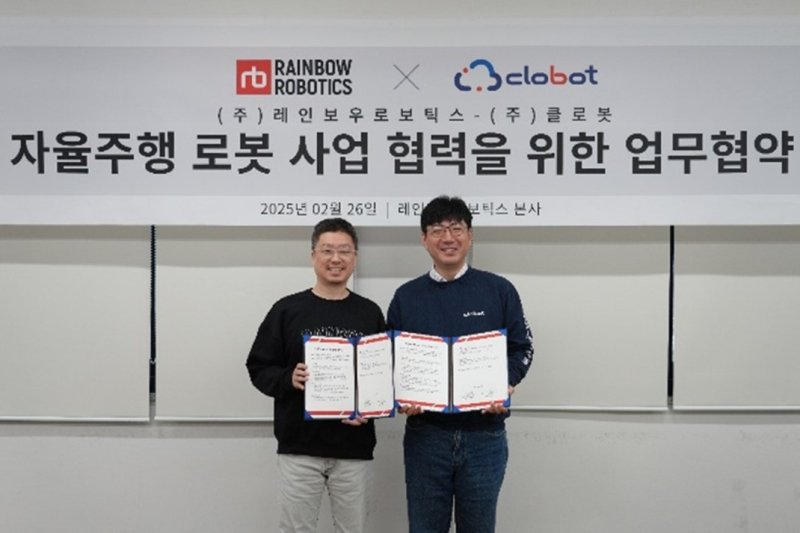 지능형 로봇 서비스 전문기업 클로봇이 산업용 로봇 제조기업 레인보우로보틱스와 제조 물류 로봇 산업 발전 및 공동 비즈니스 창출을 위한 업무협약(MOU)을 체결했다고 5일 밝혔다.