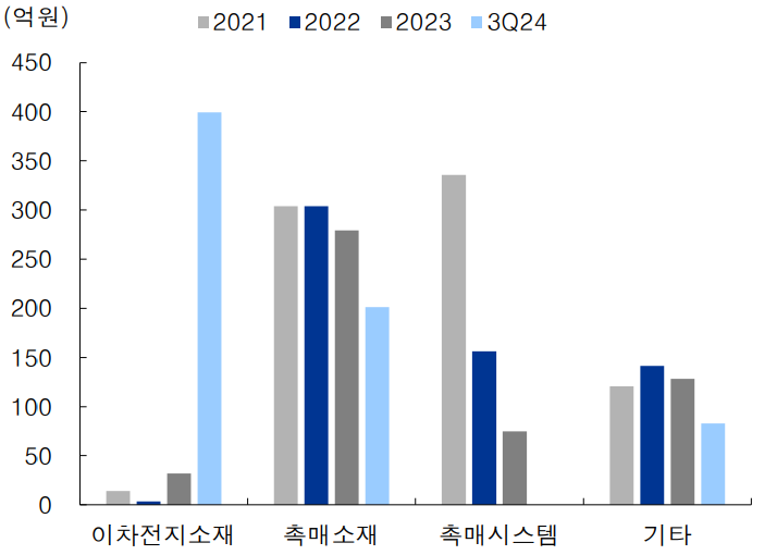 전자공시시스템(다트)에 따르면 회사의 전구체 매출 비중은 ▲2022년 0.56% ▲2023년 6.21% ▲2024년 58.34%를 기록했다.