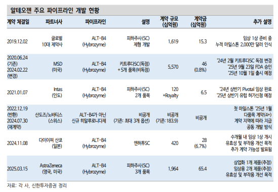한편 신한투자증권은 알테오젠의 영업이익을 2025년 1100억원, 2026년 4450억원, 2027년 6050억원으로 전망했다.