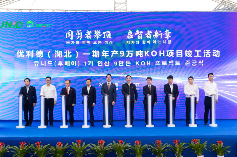 유니드가 중국 호북성 이창에 수산화칼륨(KOH) 생산 공장을 준공하며 현지 내륙 시장 공략에 속도를 높이고 있다. 회사는 점진적으로 생산 설비를 확대해 2027년 50만톤으로 확대하겠다는 계획이다.