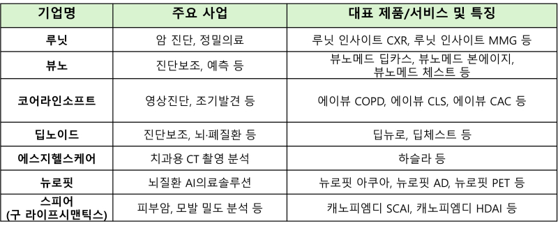 루닛, 뷰노, 코어라인소프트, 딥노이드 등 AI영상분석 솔루션 서비스 제공