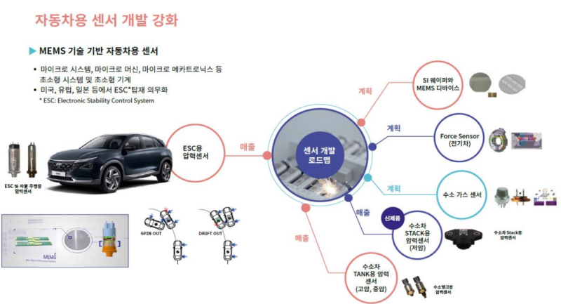 회사는 2012년 ESC 압력센서를 국산화한 후 2019년부터 양산을 진행해 국내외 자동차 부품 업체에 제품을 공급하고 있다.