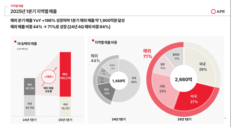 - 해외 비중: 2024년 44% → 2025년 71%로 급증