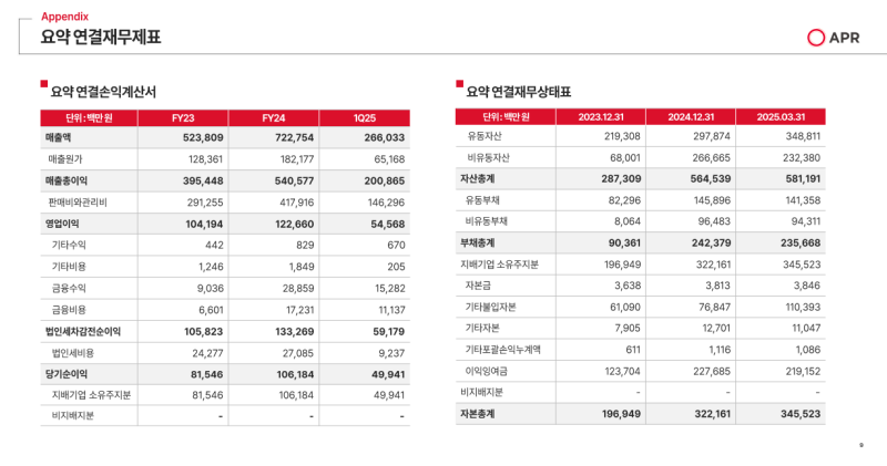 - 분기 기준 최대 실적을 달성하며 브랜드 경쟁력 입증