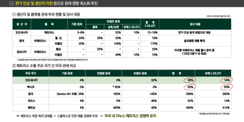 철강 제품 위주 생산 → 상호관세 미적용, 품목관세 25% 적용
