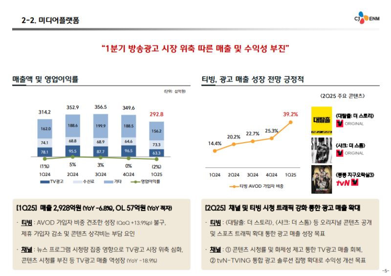 -2025년 2분기에는 시청률과 화제성 회복이 일부 나타나면서 전분기 대비 광고 실적은 반등 흐름 진입
