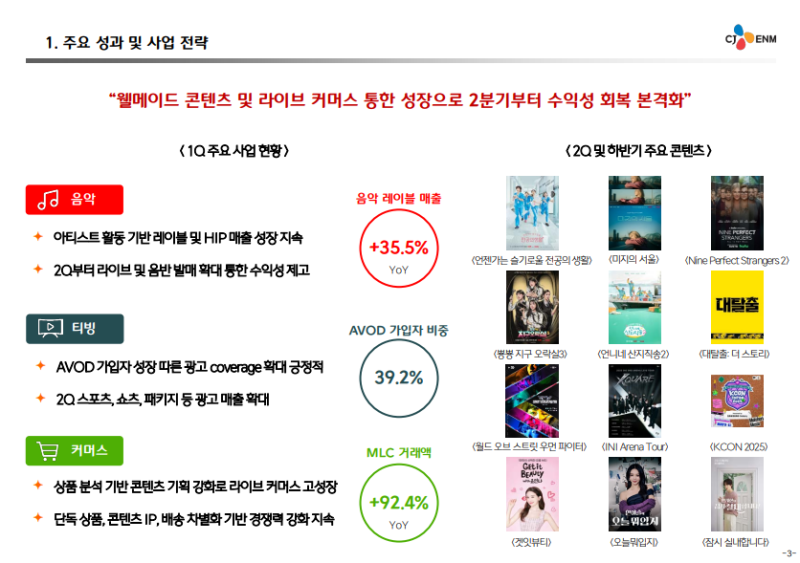· 2025년 2분기 콘텐츠 IP 확대 및 맞춤형 큐레이션 전략 강화, 추가적인 수익성 제고 방안 추진