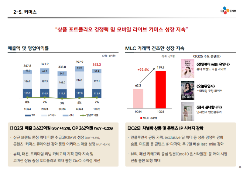 · 2025년 2분기에는 단독 상품 확대를 통한 포트폴리오 차별화, 인플루언서 및 셀럽 협업 콘텐츠 기획 강화를 통해 추가 성장 계획