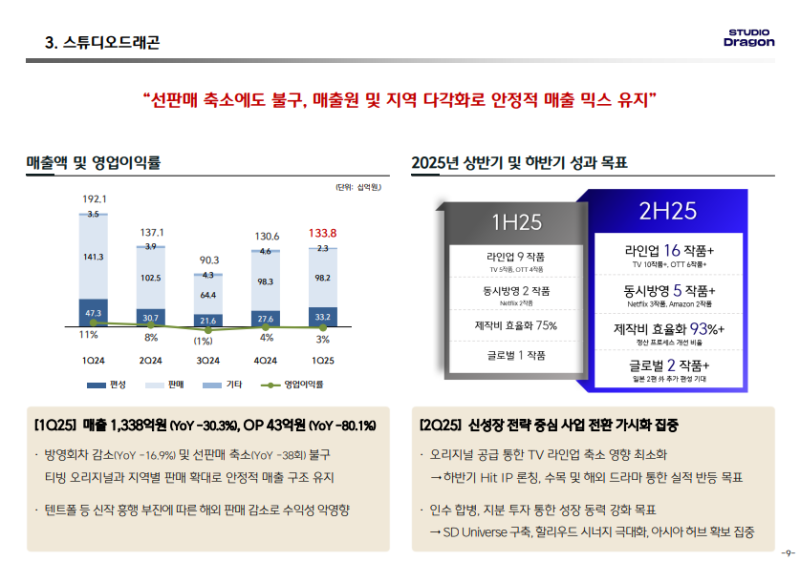 -2024년 4분기 대비 계절적 영향도 일부 작용한 가운데, 2025년 1분기 에피소드 납품은 총 5편에 그침.