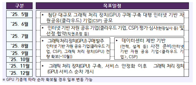 GPU를 활용하기 위한 인터넷 기반 공유 기업(클라우드 기업) 공모·선정도 진행한다.