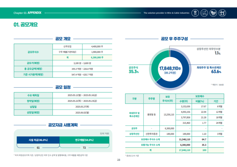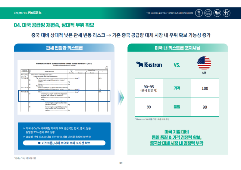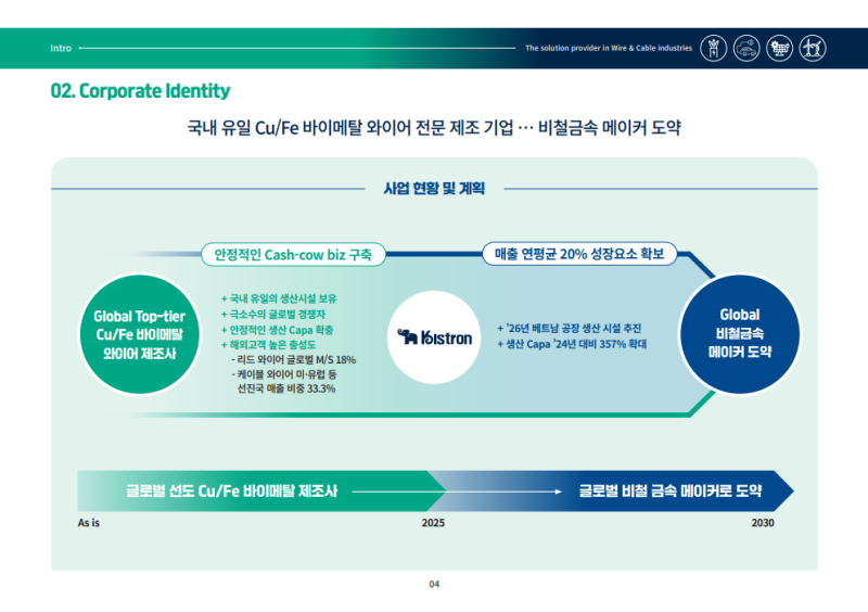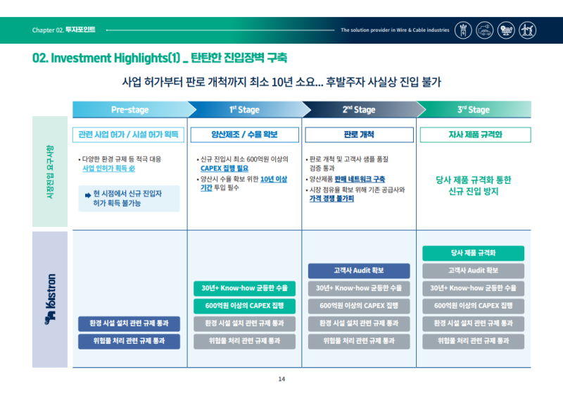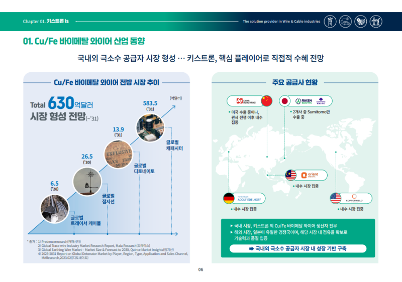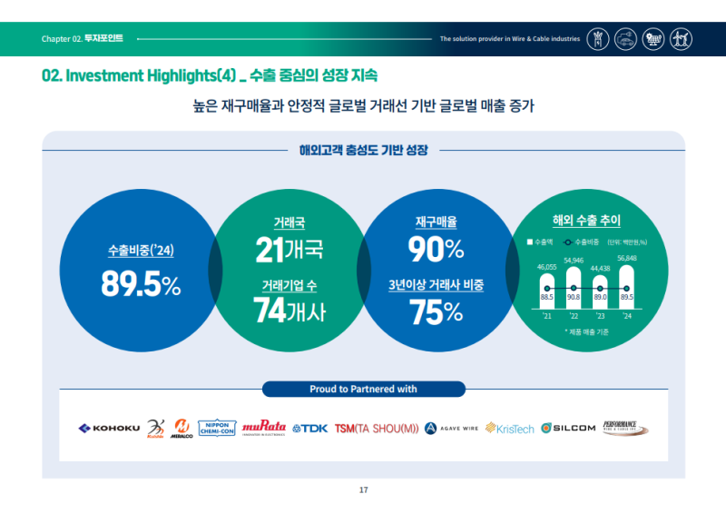 • 특히 케이블 와이어 부문은 품질 경쟁력을 기반으로 글로벌 주요 거래처와의 협력 관계를 지속 확대할 계획.