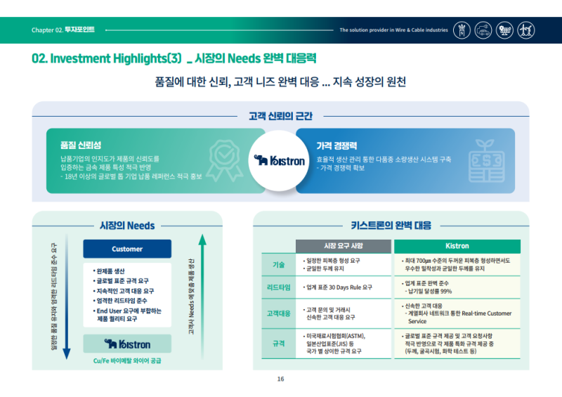 • 또한 글로벌 시장에서 가격 경쟁력까지 확보하고 있어, 품질과 비용 측면 모두에서 고객의 기대를 만족시키고 있음.