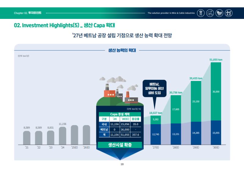 • 2026년 베트남 신공장 신설을 기점으로, 2030년까지 생산 능력을 현재 대비 약 357% 확대할 계획.