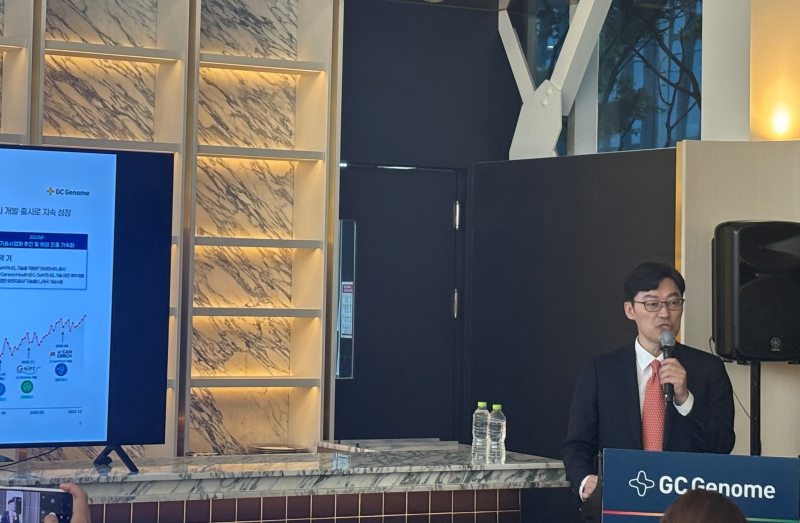 기창석 GC지놈 대표는 23일 서울 여의도 콘래드호텔에서 열린 기자간담회에서 “이번 상장을 통해 글로벌 탑 티어 액체생검·임상유전체 분석 선도 기업으로 도약하겠다”며 “보수적으로 잡더라도 2028년이면 700억원 규모의 매출을 달성할 것으로 판단한다”고 말했다.
