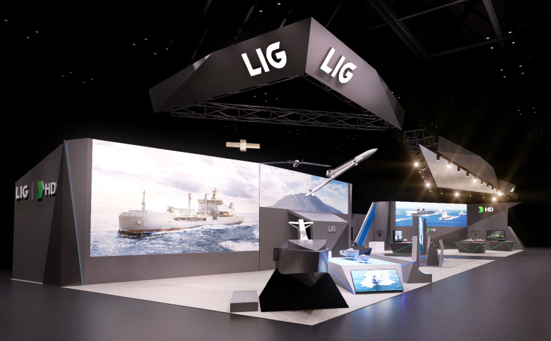 LIG넥스원은 단일 업체 기준 최대 규모인 280㎡(약 85평)의 전시관을 마련했으며, HD현대중공업과 협업해 차세대 스텔스 함정을 형상화한 공동 부스를 선보인다.