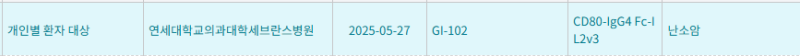 29일 식품의약품안전처 의약품안전나라에 따르면 GI-102는 지난 27일 연대세브란스병원에서 난소암 환자에게 사용하는 것을 목적으로 치료목적 사용승인을 받았다.