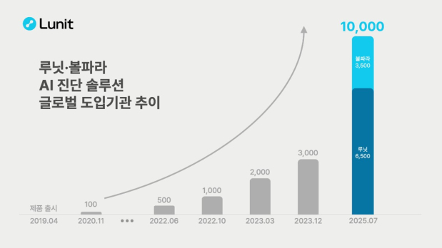 루닛은 지난달 말 기준으로 6500개 이상의 의료기관에 AI 솔루션을 공급했다. 이는 약 1년반만에 두배 이상의 성장을 기록한 것이다.