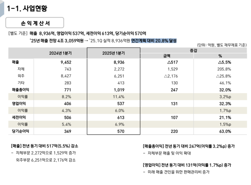 도급 중심 구조에서 자체 중심으로의 전환이 영업이익률 상승 견인