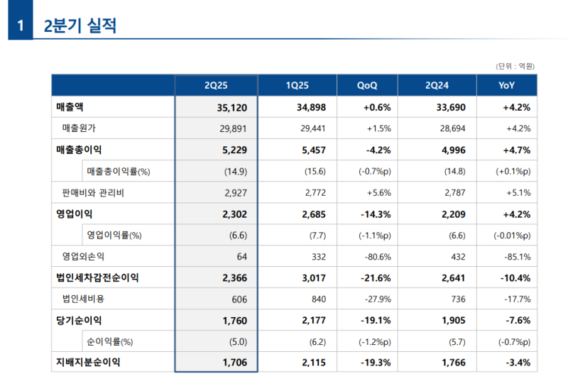 ◆ 매출액 3조 5,120억원(QoQ+0.6%, YoY+4.2%)