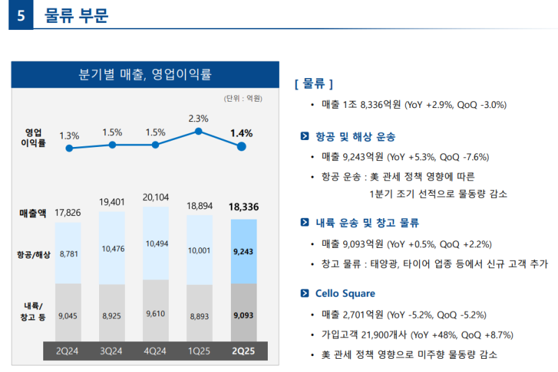 • 항공·해상 운임 하락, 글로벌 소비 위축 우려 존재하나, Cello WMS·프로젝트 물류 기반 리스크 대응