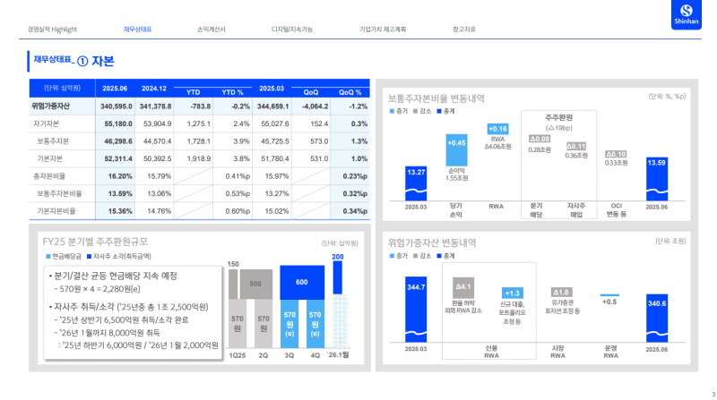 • 보통주자본: 26.98조 원 (QoQ +1.3%)