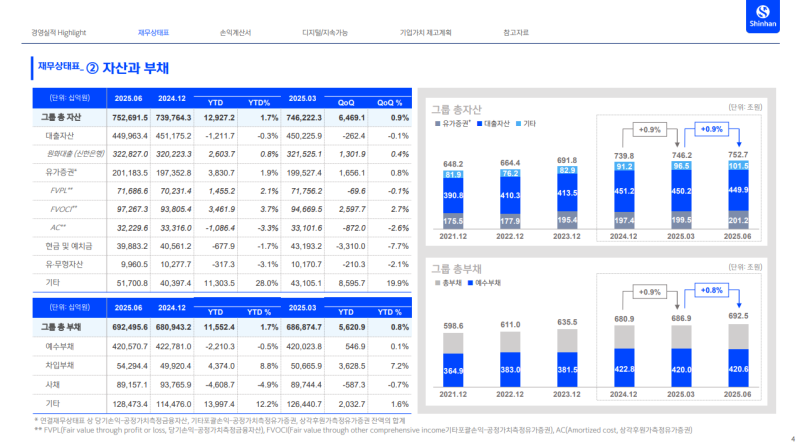 • 위험가중자산(RWA): 340.6조 원 (QoQ -1.2%)