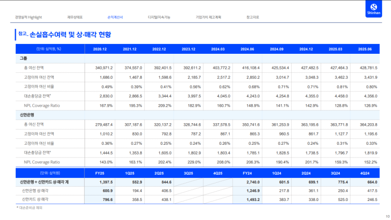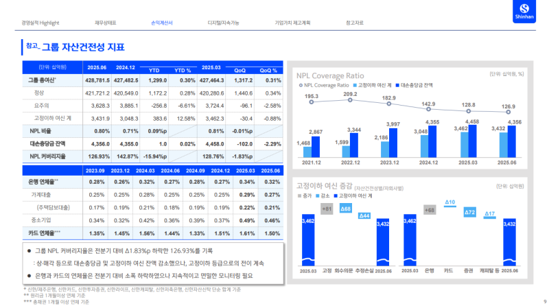 • 자산 건전성 외에도 선제적 손실 흡수를 위한 보수적 충당금 적립도 일부 반영