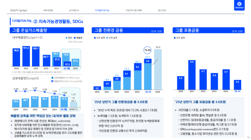 • 2025년 6월말 기준 CET1 비율은 전분기말 대비 +32bp 개선된 13.59%를 기록