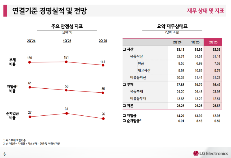 • 부채비율: 141% (1Q25 151%, 2Q24 150%)