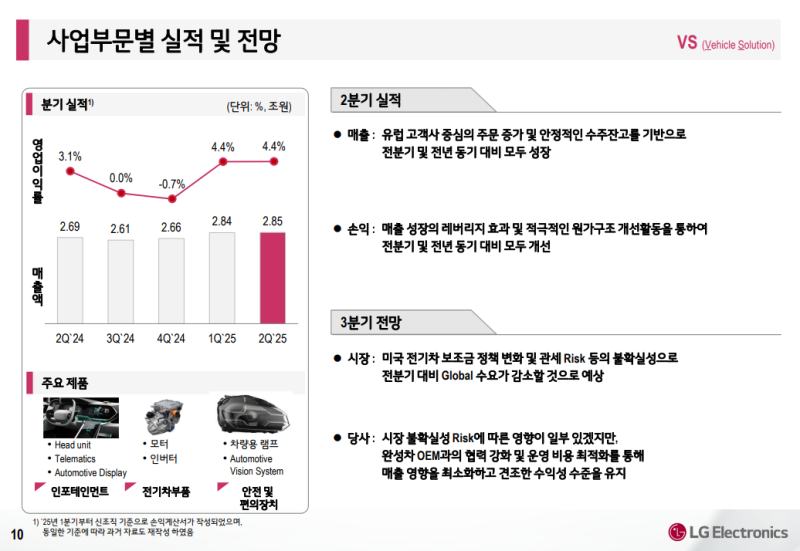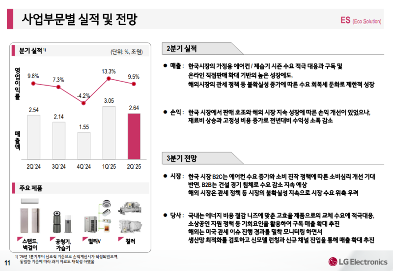 • ES: 매출액 2조 6,442억 원 / 영업이익 2,505억 원 / 영업이익률 9.5%