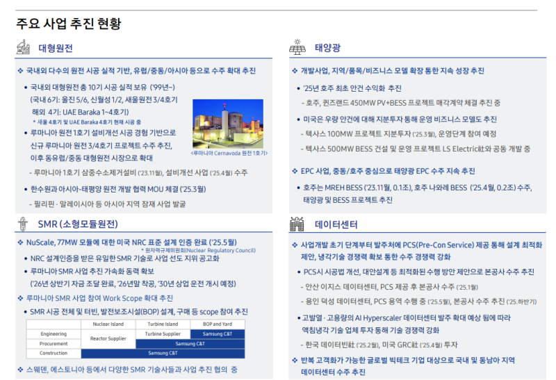 • 루마니아 SMR 사업 추진 동력 확보 및 시공·설계·구매 전체 워크스코프 확대 논의 중