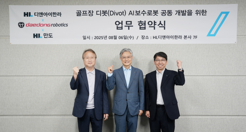 대동그룹의 AI 로봇 전문기업 대동로보틱스가 HL디앤아이한라, HL만도와 함께 골프장 내 디봇(Divot·골프장 잔디가 파이거나 벗겨진 곳) 자동 보수를 위한 AI 기반 로봇 공동 개발에 나선다. 3사는 이에 따라 기술 협력 양해각서(MOU)를 체결했다고 7일 밝혔다.
