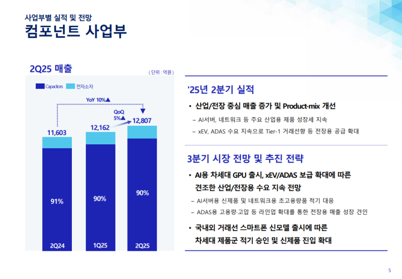 • AI 서버·고속 네트워크향 초고용량·고온·고신뢰성 MLCC 매출 전분기·전년 대비 의미 있는 증가