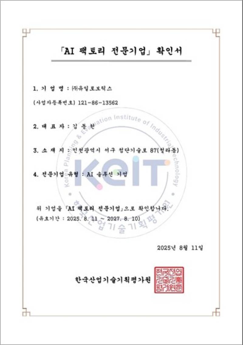 미래 산업의 게임체인저인 '휴머노이드 로봇'과 제조업 혁신의 핵심인 'AI 팩토리'를 육성하는 정부 주도 사업에 로봇자동화 전문기업 유일로보틱스가 동시에 이름을 올리며 기술력을 과시했다.