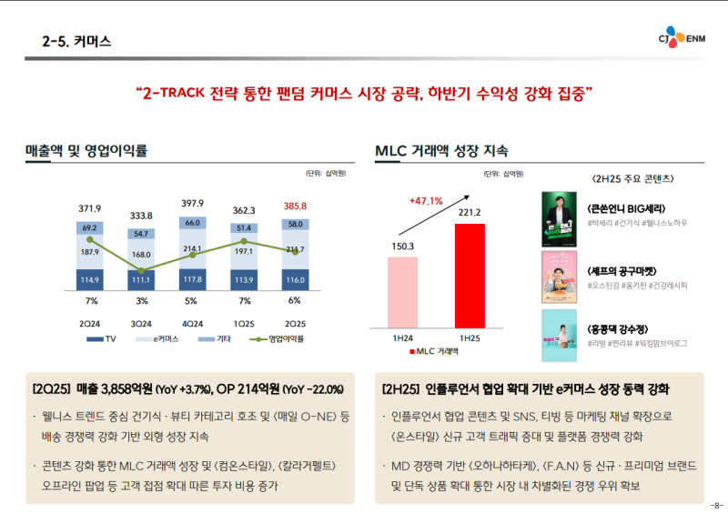 • 인플루언서 협업 콘텐츠 및 SNS·티빙 등 마케팅 채널 확장 통한 이커머스 성장 동력 강화
