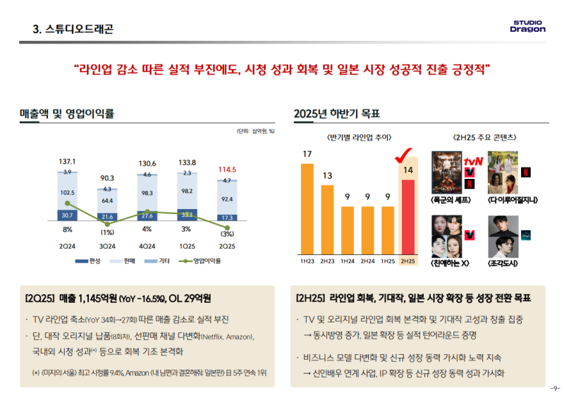 • 라인업 회복 통한 기대작 성과 집중 (<견우와 직녀>, <폭군의 셰프>, <조각도시> 등)