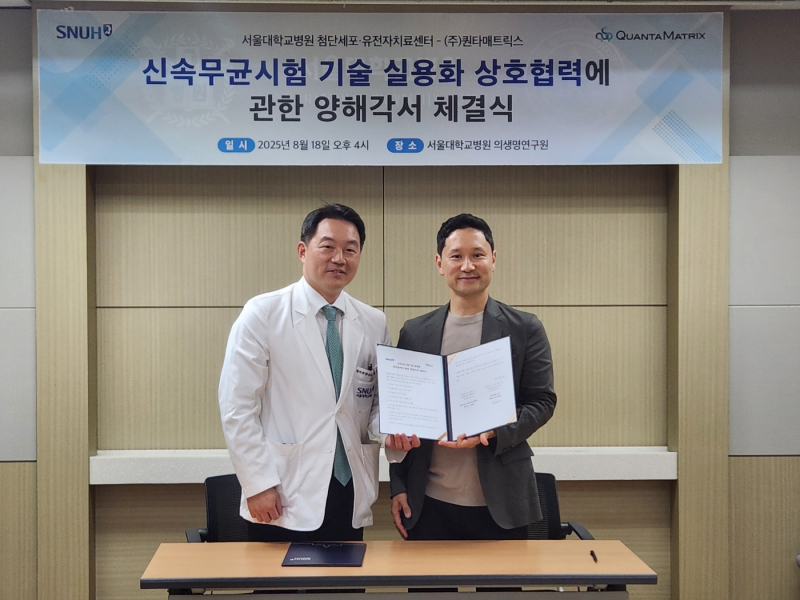 퀀타매트릭스 관계자는 “서울대병원의 임상적 통찰, 서울대 공과대학의 공학적 역량, 퀀타매트릭스의 기술 및 사업화 역량이 결합된 이번 협력은 글로벌 무균검증 표준을 선도할 전환점이 될 것”이라고 말했다.