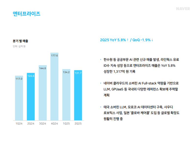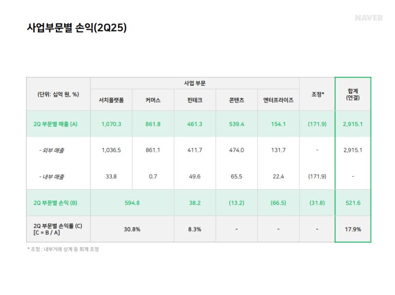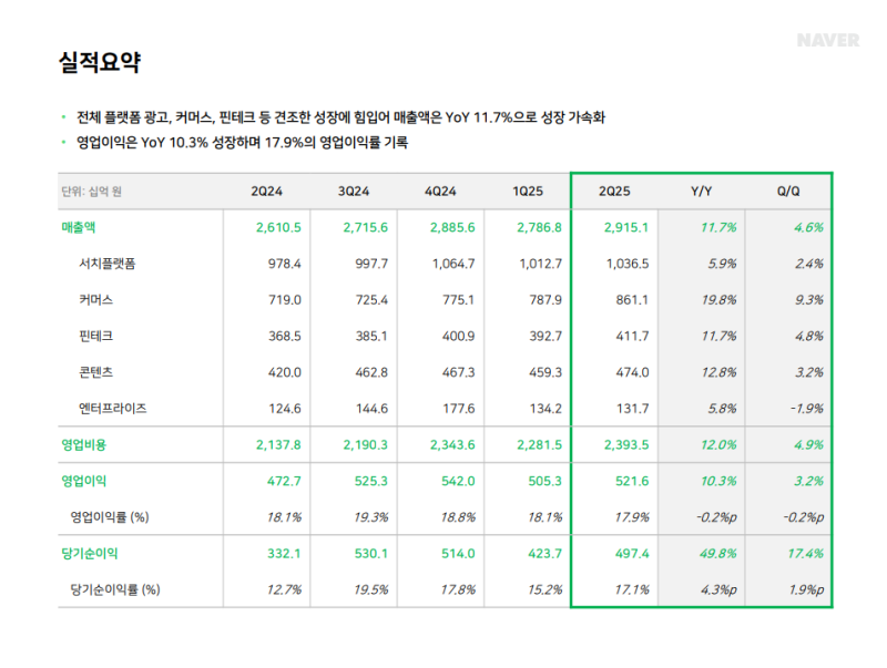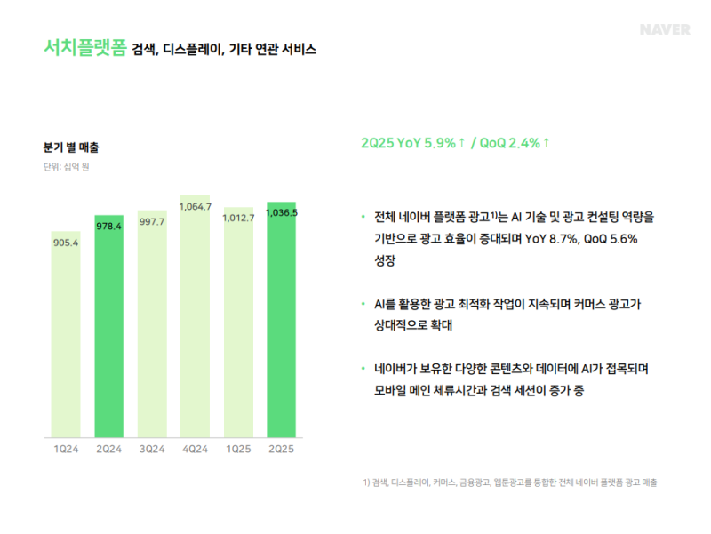 • 2Q25 서치플랫폼 매출: 1조 365억 원 (YoY +5.9%, QoQ +2.4%)
