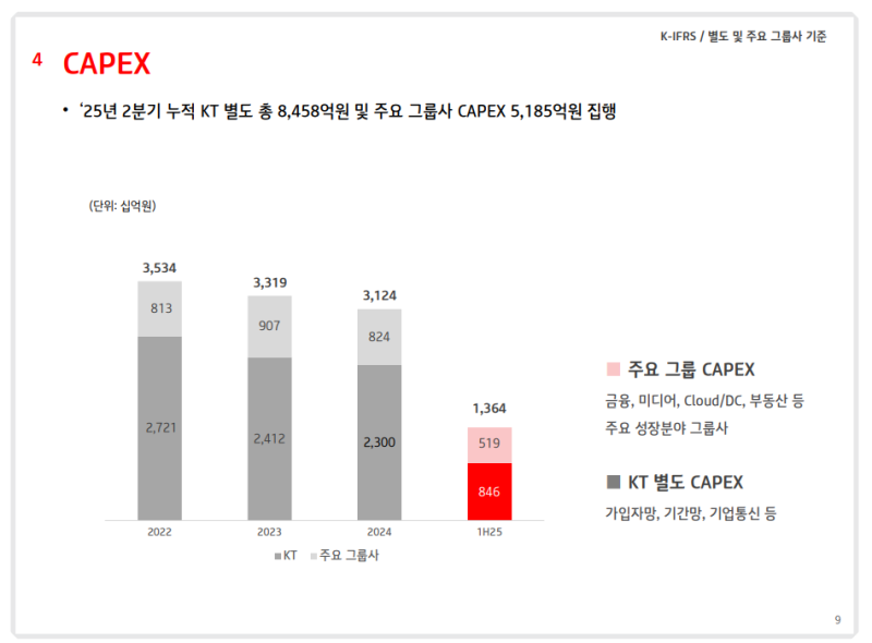 • KT 별도 CAPEX: 8,458억원