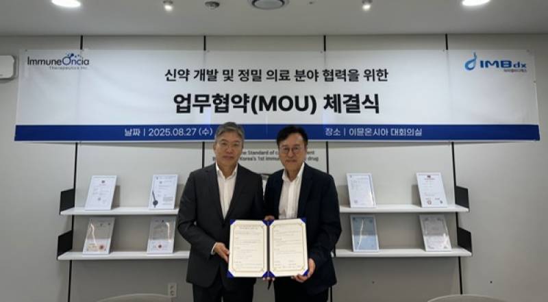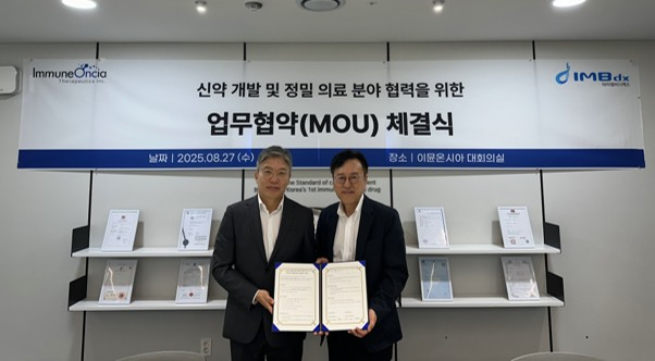이뮨온시아는 27일 아이엠비디엑스와 신약개발 및 정밀의료 분야 협력 강화를 위한 포괄적 업무협약(MOU)를 체결했다고 밝혔다.